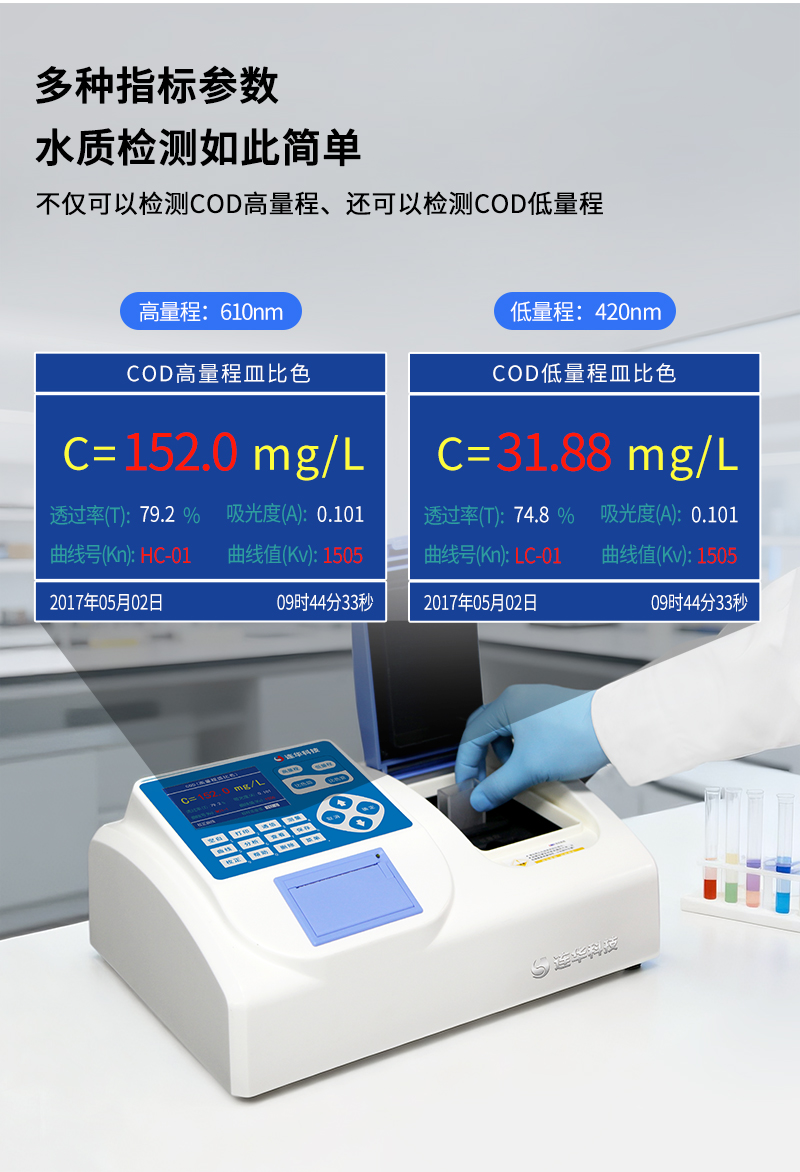 簡要描述: 儀器依據(jù)《水質(zhì)化學(xué)需氧量的測定快速消解分光光度法(HJ/T399-2007)》標(biāo)準(zhǔn)設(shè)計,采用雙光路無干涉系統(tǒng),可以測定COD高量程、COD低量程水樣,同時支持皿比色與管比色兩種比色方式,便于用戶選擇合適的耗材進行實驗,具有極高的便利性和性價比。