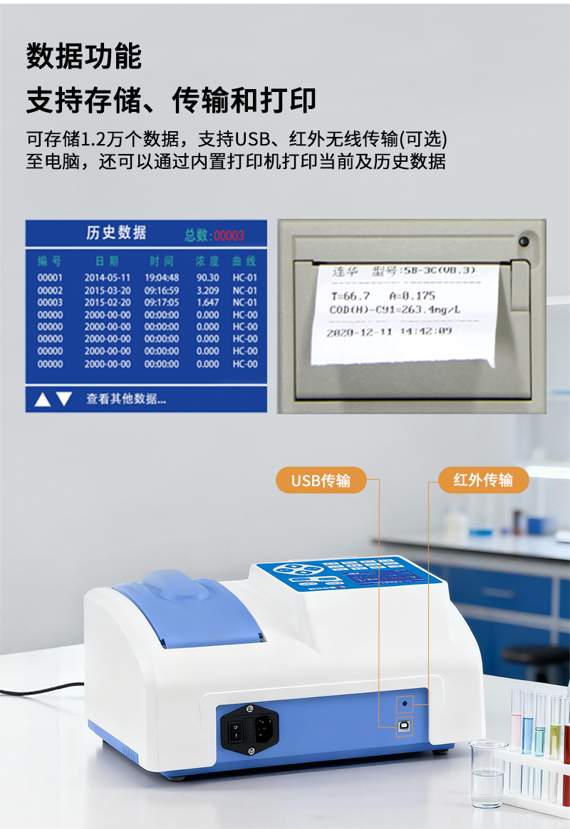 7、可向計算機傳輸當(dāng)前數(shù)據(jù)和歷史數(shù)據(jù),支持USB、紅外無線傳輸;