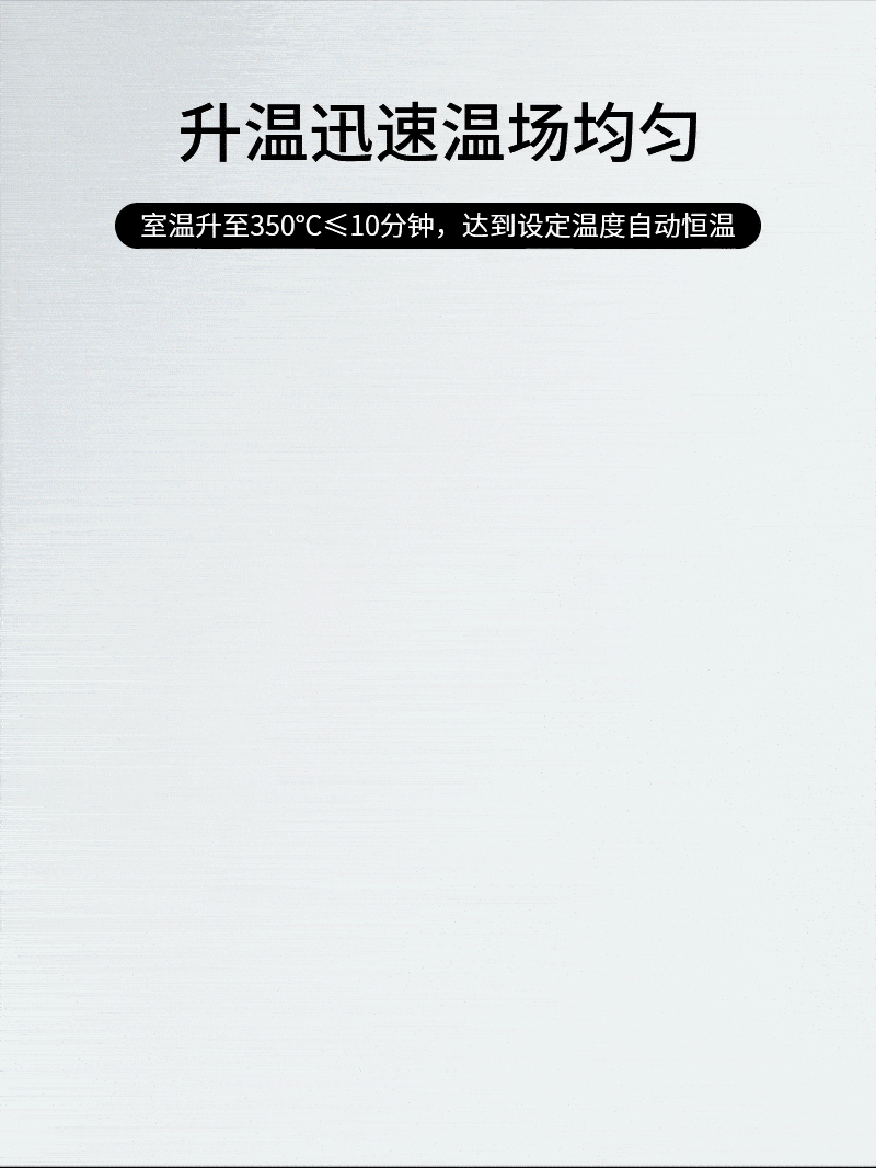 2.升溫迅速溫場均勻,室溫升至350℃≤10分鐘,達(dá)到設(shè)定溫度自動恒溫;